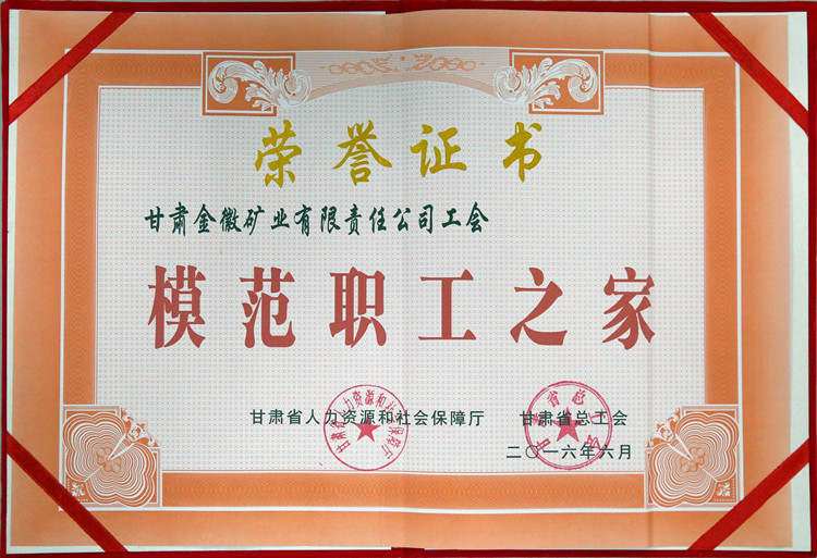 近日,金徽股份工會被省人力資源和社會保障廳、省總工會聯合授予“模范職工之家”榮譽稱號。