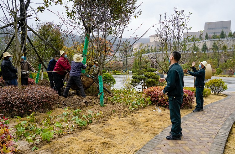 植樹活動現(xiàn)場,大家在做好疫情自我防護的同時,干勁十足。他們三五人自發(fā)成組,相互配合、默契協(xié)作,或扶樹填坑、或揮鍬培土、或提桶澆水,每個環(huán)節(jié)銜接有序,合力栽下一棵棵樹苗,也共同播下疫散春來、華枝春滿的勃勃生機。經(jīng)過幾個小時的努力,一株株新栽種的冬青、石楠、廣玉蘭、雪松等樹木迎風而立,為金徽股份增添了一片片濃濃春意。